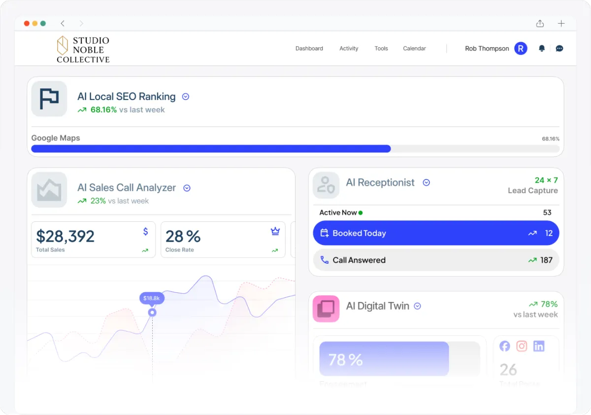 we help local businesses dominate their market, capture every opportunity, and scale without adding overhead. Using AI that works 24/7